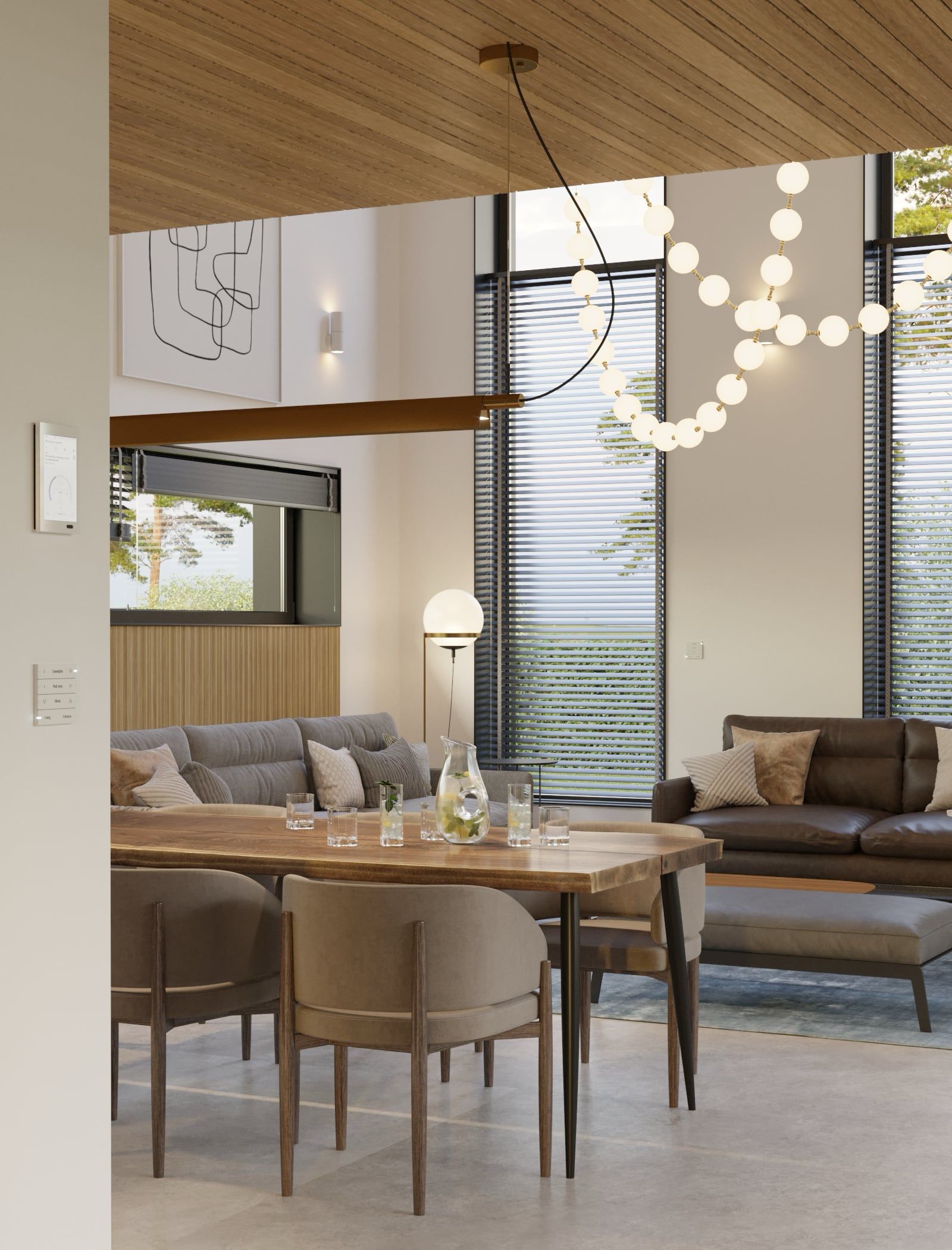 Понятие современный дом тесно связано с автоматизацией систем контроля климата, освещения и безопасности. Все управление дублируется на смартфон/планшет/компьютер, что очень удобно и позволяет сэкономить время.